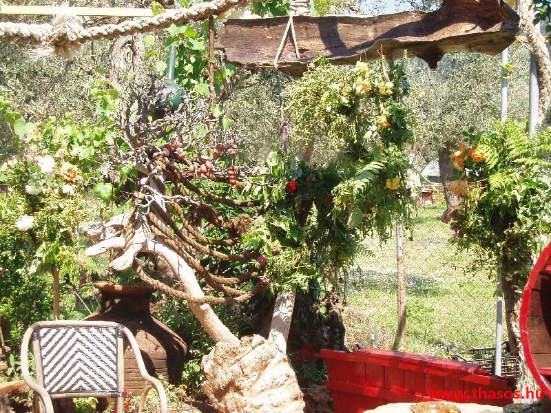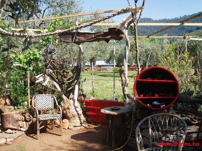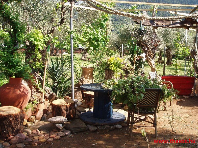 Mi kora reggel még egy kis kerti munkát terveztünk, de a szomszéd ránk rivallt, hogy ma senki nem dolgozik, maximum főzhet. Így 10 órára az egész szomszédság és rokonság összegyűlt Nikoszékhoz és megkezdtük a sütögetést. Volt kolbász, kecskesült, polip, kecskéből zöldséges fehérszaftos frekaszé,- ez a kedvencem-, meg 10 féle saláta. Mind finomabbnál finomabb. És volt egy szakácsunk is, aki irányította a menetet. Ezen jót nevettem, mert Pános mikor meglátta a szakácsot, örömmel üdvözölték egymást, majd a fülembe súgta : Ő az észak-görög legelismertebb szakácsa! Valóban isteni dolgokat ettünk a keze által. Viszont vasárnap, mikor Efivel pletykáltuk ki a történéseket, őnekik szintén észak-görög legelismertebb szakácsa főzött!