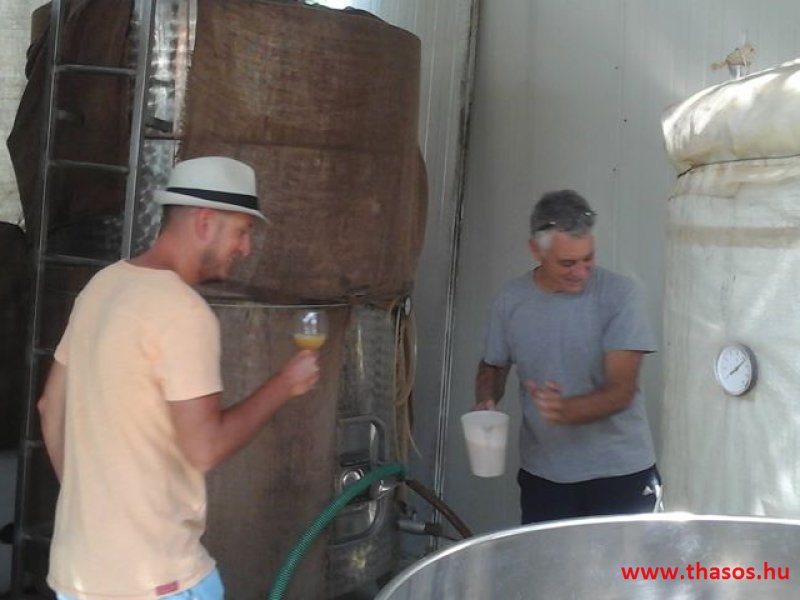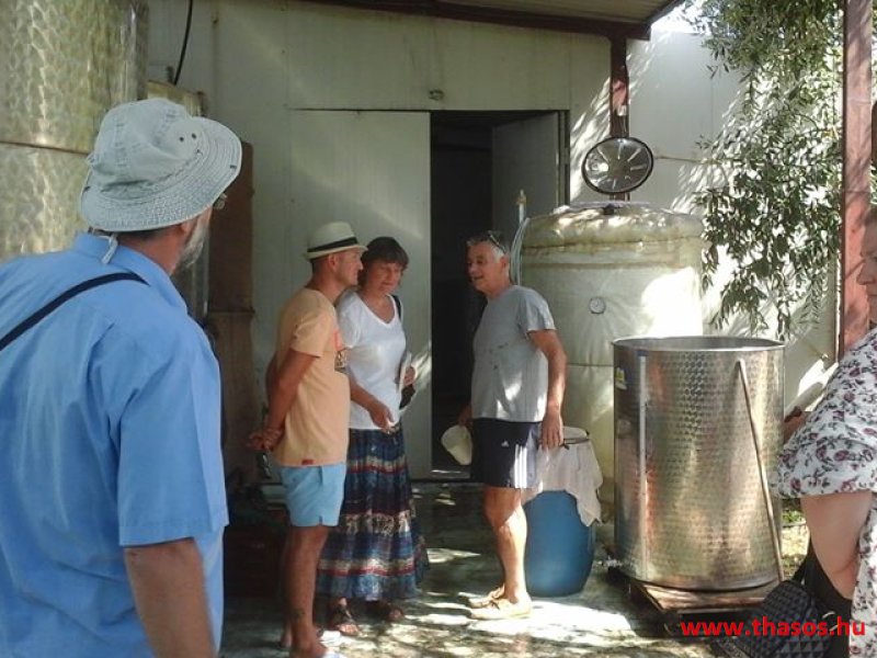 Elmondta, hogy Panagia főterén a platánfás étterem mellett a sarki, thassosi termékeket árusító szaküzletben még hozzájuthatunk a tavalyi borához, ha szerencsések vagyunk. Ott lehet még száraz és édes bora is. Hallottunk tőle egy tanácsot, mit érdemes mindenkinek megfontolni.