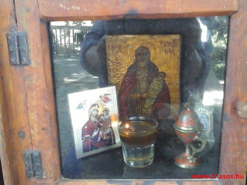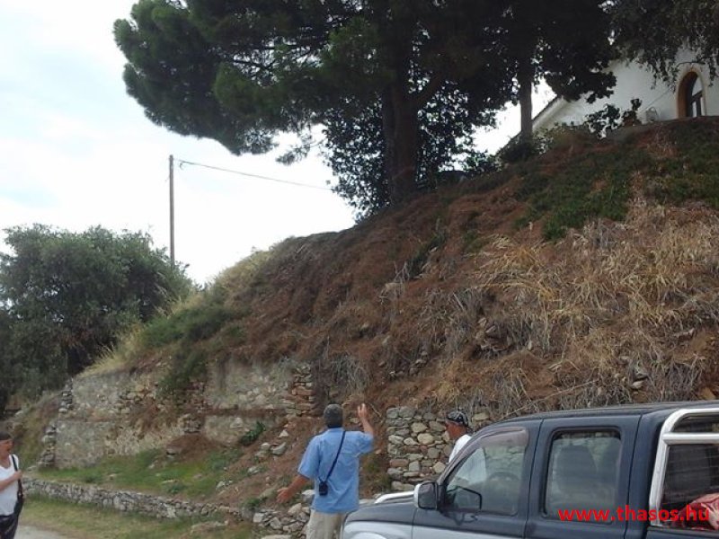 Ínycsiklandónak ígérkezett minden. Hanem a fele rendelésünk vakvágányra futott. A faszénen sült marha olyan öreg volt, hogy sem kés, sem a fogunk nem tudott megbirkózni vele. A többi étel fantasztikus finom volt. A marhahús miatt hívtuk a tulajdonost. Bár akkor elismerte, hogy valóban nem fogyasztható az étel, és bár végig udvariasak voltunk, egy kedves elnézéskérés a csalódottságunkra nem jutott. Lehet, hogy az ikon tehet róla, mely az Agios Pavlos kolostorban pihen? Legközelebb itteni étkezésünknél majd egy imát mondunk az ikonhoz. Vagy frissensültet nem rendelünk...Kirándulásunk, mivel közben az Athos felől jött a szél, inkább csak autózás volt. Lementünk Skála Sotiros partjára az i.e. 2500-ból származó ásatáshoz. Itt sajnálkoztunk, hogy a leleteket úgy védik, hogy nem sok minden látható azokból. Meséimet e területről majd talán máskor mondom el.