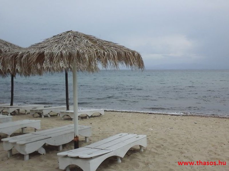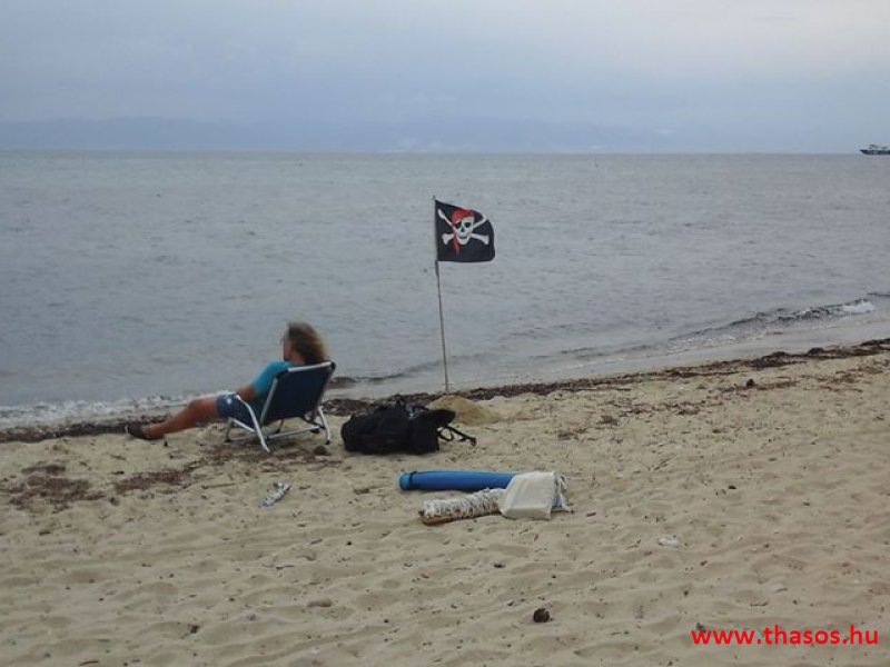 Az Athos felhők tovább gyülekeztek, jött a szél is. Elfújt egészen Skála Prinos Dassilia területéig bennünket. A kikötő felé eső strandon hatalmas tömeg napozott, fürdött. Az Kavalának szembe esik, így nyugodtabb volt ott az idő. Mi inkább a nyaralóterület nyugati oldalára mentünk. Ott horgászok és egy-két merész kalóz élvezkedett.