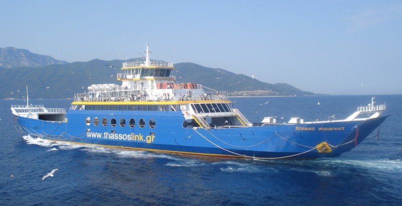 Kérjük minden autós figyelmét a jegyváltásnál és bekompolásnál. Ellenőrizzék, melyik kikötőben szeretnének célt érni. Ha Keramotiban a képen látható hajót találják, akkor kérdezzen rá mindenki, hogy melyik kikötőbe megy a hajó.