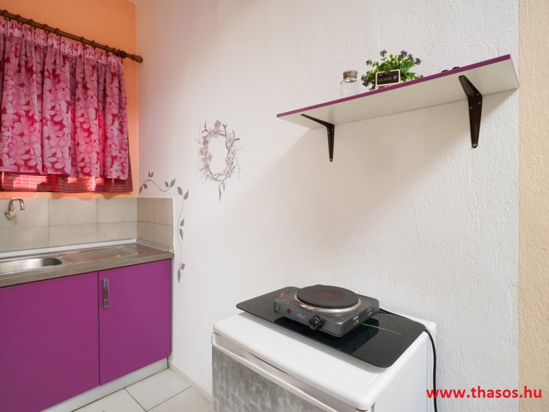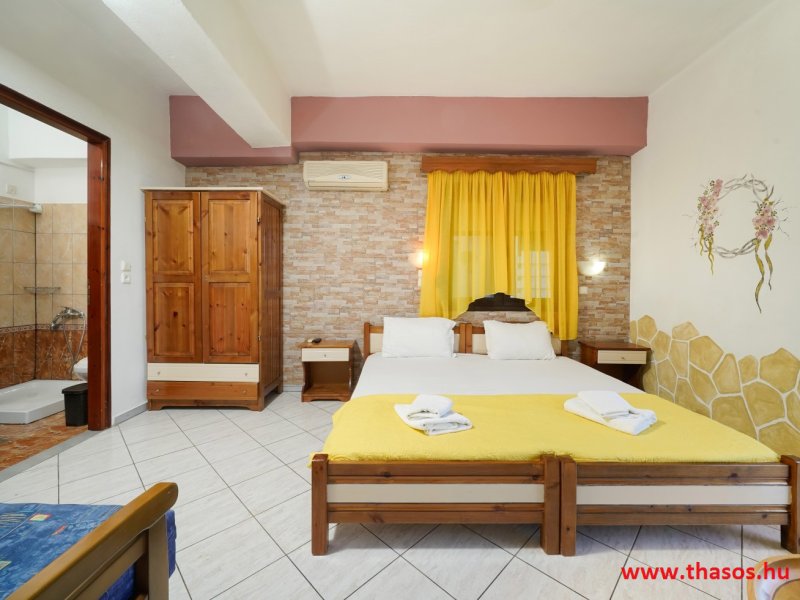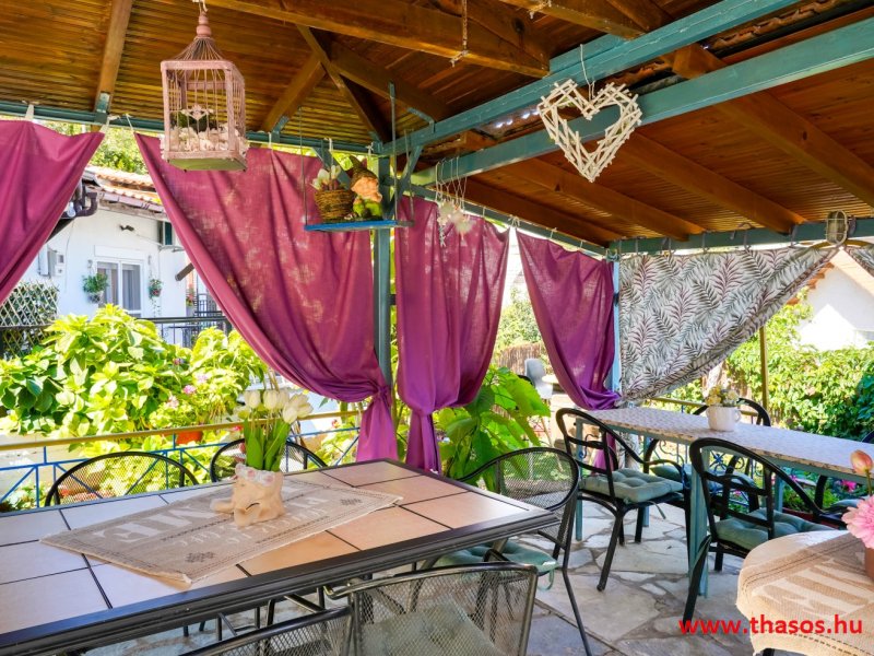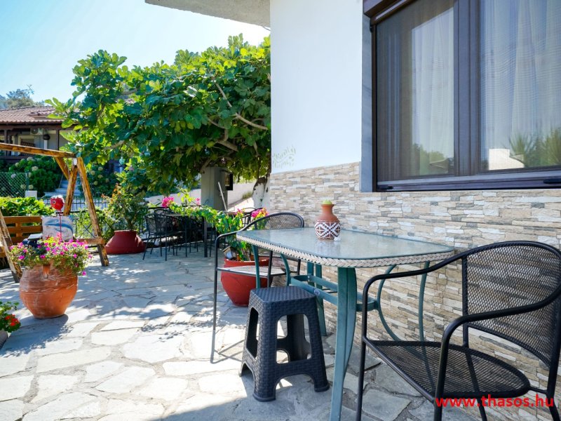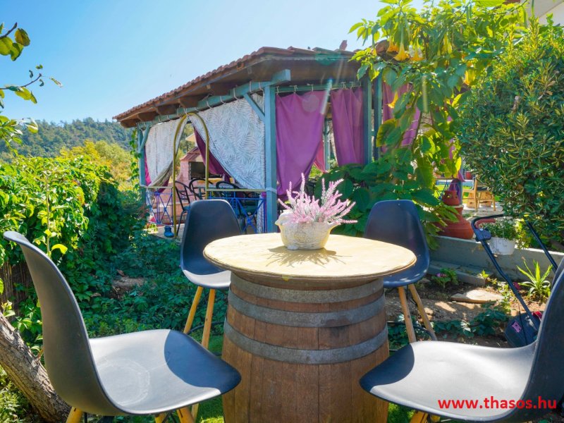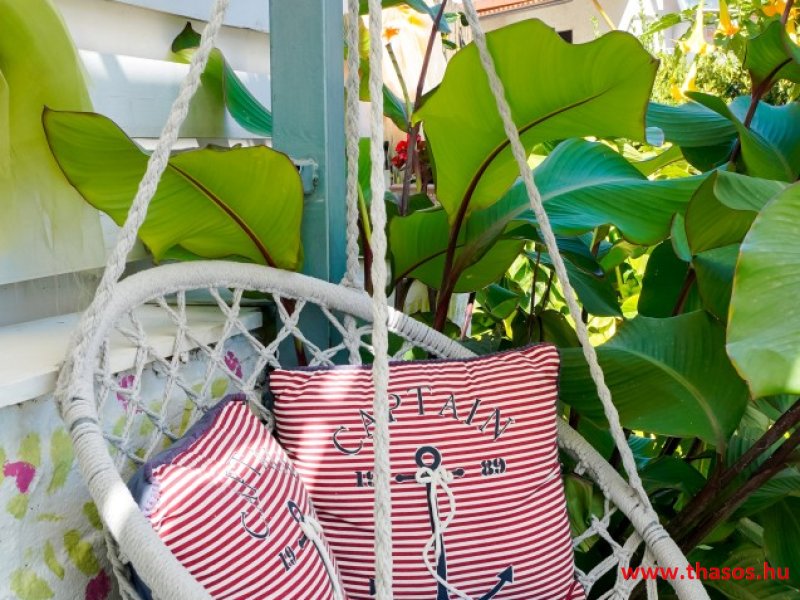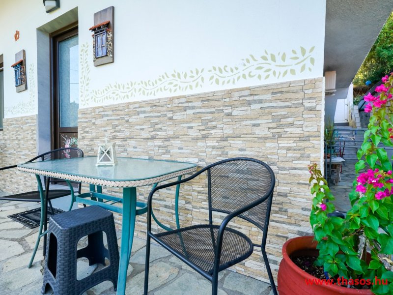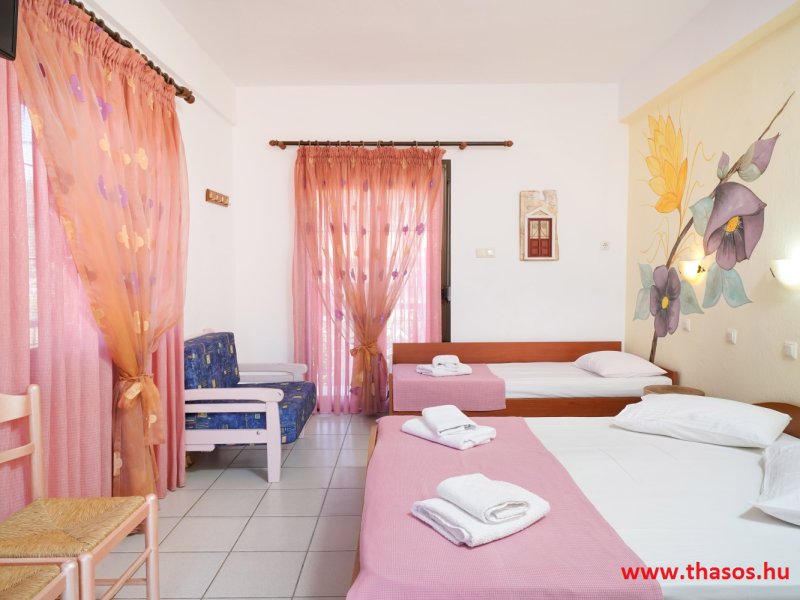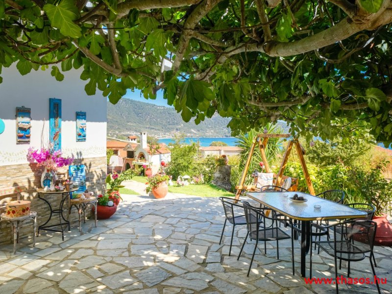 Az Ifigénia butikapartman ideális úti cél azok számára, akik nyugodt nyaralásra, minőségi pihenésre vágynak, újra kapcsolatba akarnak kerülni a természettel, és egyedi szálláslehetőséget keresnek. Az apartmankomplexum egy építész mérnök háza. A telket megemelve arra törekedett, hogy pazar tengeri kilátás legyen az öbölre. Az ház belső lakásai szintén belső építész alakította ki. A lakások elnevezése ezek miatt, inspirációként a görög mitológiát és a kilenc múzsát, a művészetek és a tudományok különböző területeivel kapcsolatos istennőket választva. Az egész ház egy csodálatos varázs. A ház helyzete szintén remek. egy lélegzetre a színes forgatagos turista sétánytól, ahova az egész szigetről érkeznek. Földszint: Melphomene Apartman-stúdió. A lakás 45m2, kettő bejárattal rendelkezik. A főbejárat felől kettő nagy méretű egyszemélyes fotelágy jobbról és balról. Közöttük tágas tér. A bal oldali fotelágy mögött a válaszfal a hálórésztől 2db nagy méretű szekrény ötletes, hangulatos díszítéssel. Ez a kialakított légtér, ahol kettő személy alhat, 6m2-es. A fő hálótér innen nyílik, amiben a szokásos szobabútorok vannak: ikerágy, komódok, tükör, ruhásszekrény. A nagysága: 15m2. Ennek is van külön kijárata, ami a tenger oldala felőli teraszra vezet. A fő hálótérből nyílik a tágas konyha, ami minden otthoni háztartási felszereléssel rendelkezik. A konyhában kényelmes étkezőrész is van. Az étkezőrészből nyílik a süllyesztett sarokfürdőkádas fürdőszoba. A fürdőszoba 5m2. A fotón átalakítva láthatják. A szekrények visszahelyezésével a lakótér egy légterűvé változik. CLIO. Ez egy tágas méretű apartman. A lakásba lépve van egy tágas nappali, ahol baloldalt 2 fős ikerágy van. A konyha a nappali jobb oldalán van. Közvetlenül a konyharész mellett nyílik a nagy méretű fürdőszoba, aminek a berendezése toalett, általános fürdőszobai kellékek. A hálószoba a nappali bal oldaláról nyílik. Berendezése egy két fős ikerágy, és egy kanapé, ami alvásra is szolgálhat. A hálóban van a tv és a légkondicionáló berendezés. A nappalit és a hálószobát egy tolóajtós faajtó választja el. A háló otthoni komforttal felszerelve, teljes falat betöltő bőséges szekrény. Ami ennek a lakásnak még az előnye, hogy nagy méretű kétszárnyas ablakkal rendelkezik a nappali és a hálószoba is, ahonnan rálátás nyílik a teraszra, a parkra, és a tengerre. Tehát az egész apartmanlakás világos, szellős és gyönyörű panorámájú, ha kinyitjuk az ajtókat, ablakokat. Ehhez a lakáshoz két terasz tartozik. Az egyik a hegyoldalra, a másik az épülethez tartozó gondozott parkra és a tengerre néz. 2008. júniusában lett a lakás felújítva. Polymhnia Kettő darab iker stúdió. Mind kettő stúdió rendelkezik, Tv, légkondicionáló berendezés, saját konyha sarok, saját fő bejárat, saját fürdőszoba, saját terasz résszel rendelkezik. A kettő teljesen felszerelt lakás közt a közös falon van egy ajtó, mely bejárást engedhet a kettő lakás közt. Valamint a kettő lakás előtt, van egy gyönyörű tengeri kilátású közös terasszal is. Ideális lehet kettő baráti házaspárnak, akár egy - egy kis gyermekkel is. Első emelet: EUTERPE Apartman-stúdió. Az épület jobb oldalán van. A tágas hálószoba 4 ággyal és egy kanapéággyal és a normál hálószobai bútorral rendelkezik. A hálóból a hegy felé nyílik egy tágas konyha, aminek a berendezése szintén a megszokott normál berendezés. A konyhában van egy kényelmes étkezőrész is. A fürdőszoba normál méretű és zuhanytálcás. A hálóból nyílik egy óriási erkély, ami körbevezet az épület jobb oldalától egészen az épület eleje tengerre néző oldalára a háló teljes szélességében. CALLIOPE stúdió Napfelkelte a tengeren az ágyból látható. Ez az előzőnek a tükörképe az épület bal oldalán, de egy kicsit kisebb, ezért csak 4 fős. Ágyai 3 normál ágy és egy fotelágy. TERPSICHORE stúdió Napfelkelte a tengeren az ágyból látható. A Calliope stúdió szomszédja keletre nézve. Mérete és elrendezése azonos a Calliope stúdióval. ERÁTÓ stúdió Az épület egyik legkedvencebb stúdiója. Elszeparált különleges hegyi páholyú terasza a lakás ékszere. Kettő normál ágy és egy fotelágy 3 fő normál ágy felnőtt és egy gyermek fotelágy részére kényelmes. Kis konyhájából nyílik kilépés a teraszra. Második emelet: URÁNIA Apartman. Széles biztonságos lépcső vezet a legfelső szintre. A tágas hálószobában 3 db ágy és egy kanapéágy és a normál hálószobai bútorok, szekrény van. Innen nyílik a másik helyiség, ahol franciaágy, konyhasarok és hangulatos étkező, csodálatos rálátással a tengerre. E helyiségből nyílik a zuhanytálcás fürdőszoba is. THÁLIA Apartman. Az Uránia apartman bejáratától tovább haladva a függőfolyosó végében található. Szolgáltatás: Földszint: 1 db 3+2 ágyas apartmanlakás /CLIO/ Első emelet: Második emelet: Apartman 2+2 fő lakás/4 fő Melphomene - 15 Euró/éjszaka/lakás/4 fő 5. fő + 10 Euró extra költség Stúdió 2-3 fő Polhimnia stúdiók 2 fő/- 3. fő +5 Euró költség A megadott árak nem tartalmazzák a helyben fizetendő extra turisztikai adót. 2025. évben a stúdiók 2 Euró, az apartmanok 5 Euró/éjszaka/lakás ár extra költséggel rendelkeztek. Calliope Stúdió Kert képek Képek az öbölről