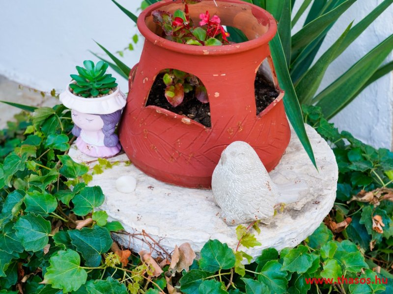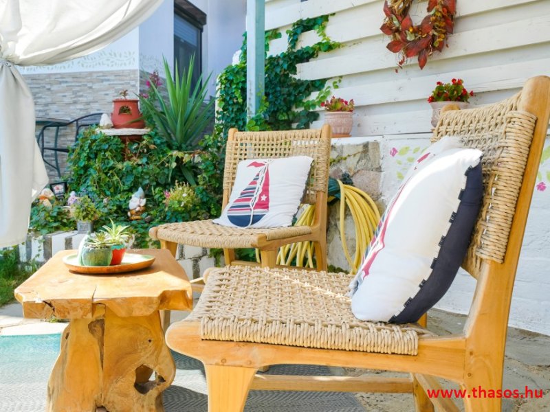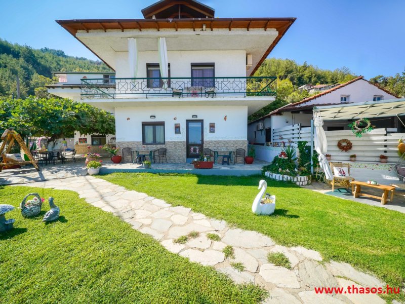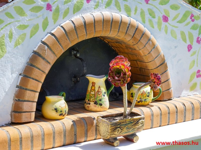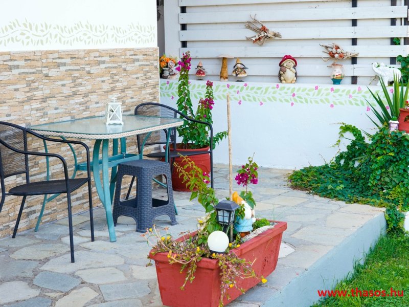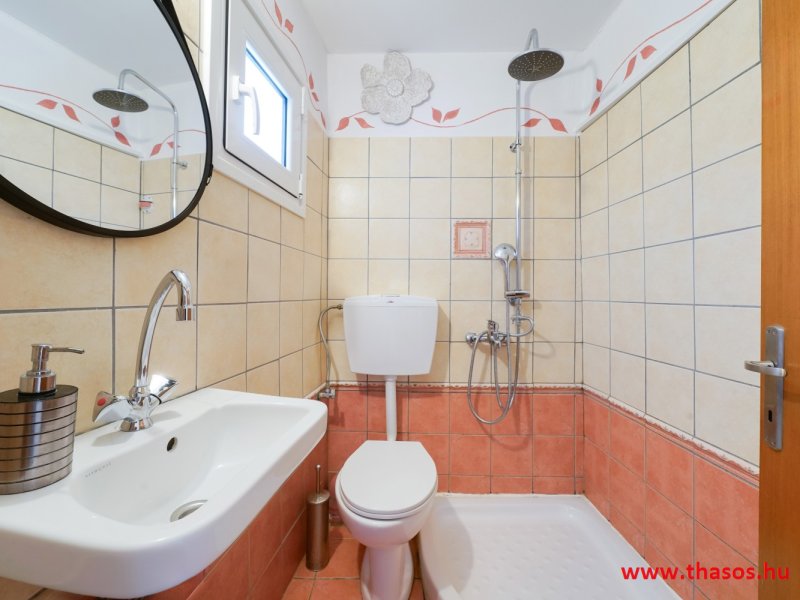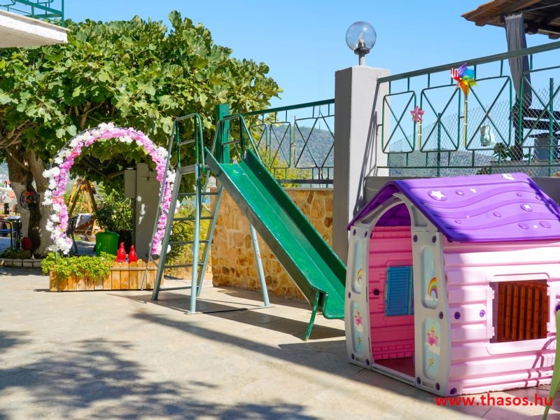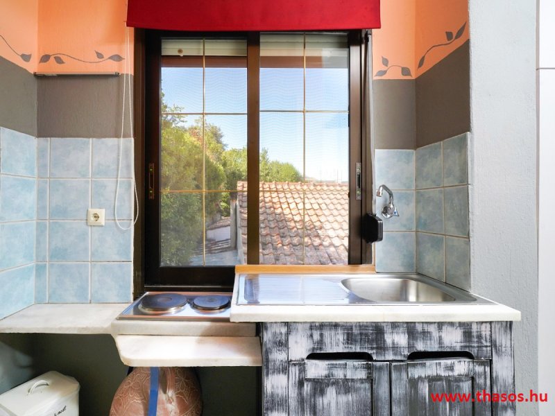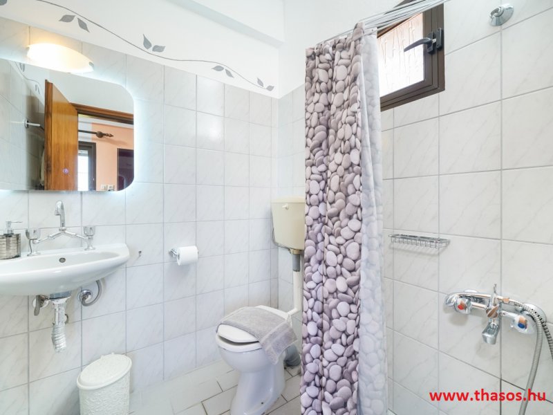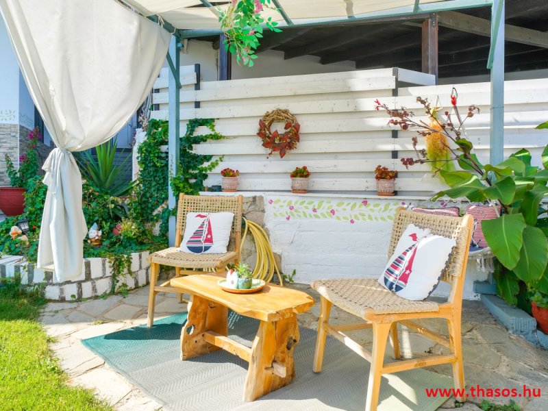 Az Ifigénia butikapartman ideális úti cél azok számára, akik nyugodt nyaralásra, minőségi pihenésre vágynak, újra kapcsolatba akarnak kerülni a természettel, és egyedi szálláslehetőséget keresnek. Az apartmankomplexum egy építész mérnök háza. A telket megemelve arra törekedett, hogy pazar tengeri kilátás legyen az öbölre. Az ház belső lakásai szintén belső építész alakította ki. A lakások elnevezése ezek miatt, inspirációként a görög mitológiát és a kilenc múzsát, a művészetek és a tudományok különböző területeivel kapcsolatos istennőket választva. Az egész ház egy csodálatos varázs. A ház helyzete szintén remek. egy lélegzetre a színes forgatagos turista sétánytól, ahova az egész szigetről érkeznek. Földszint: Melphomene Apartman-stúdió. A lakás 45m2, kettő bejárattal rendelkezik. A főbejárat felől kettő nagy méretű egyszemélyes fotelágy jobbról és balról. Közöttük tágas tér. A bal oldali fotelágy mögött a válaszfal a hálórésztől 2db nagy méretű szekrény ötletes, hangulatos díszítéssel. Ez a kialakított légtér, ahol kettő személy alhat, 6m2-es. A fő hálótér innen nyílik, amiben a szokásos szobabútorok vannak: ikerágy, komódok, tükör, ruhásszekrény. A nagysága: 15m2. Ennek is van külön kijárata, ami a tenger oldala felőli teraszra vezet. A fő hálótérből nyílik a tágas konyha, ami minden otthoni háztartási felszereléssel rendelkezik. A konyhában kényelmes étkezőrész is van. Az étkezőrészből nyílik a süllyesztett sarokfürdőkádas fürdőszoba. A fürdőszoba 5m2. A fotón átalakítva láthatják. A szekrények visszahelyezésével a lakótér egy légterűvé változik. CLIO. Ez egy tágas méretű apartman. A lakásba lépve van egy tágas nappali, ahol baloldalt 2 fős ikerágy van. A konyha a nappali jobb oldalán van. Közvetlenül a konyharész mellett nyílik a nagy méretű fürdőszoba, aminek a berendezése toalett, általános fürdőszobai kellékek. A hálószoba a nappali bal oldaláról nyílik. Berendezése egy két fős ikerágy, és egy kanapé, ami alvásra is szolgálhat. A hálóban van a tv és a légkondicionáló berendezés. A nappalit és a hálószobát egy tolóajtós faajtó választja el. A háló otthoni komforttal felszerelve, teljes falat betöltő bőséges szekrény. Ami ennek a lakásnak még az előnye, hogy nagy méretű kétszárnyas ablakkal rendelkezik a nappali és a hálószoba is, ahonnan rálátás nyílik a teraszra, a parkra, és a tengerre. Tehát az egész apartmanlakás világos, szellős és gyönyörű panorámájú, ha kinyitjuk az ajtókat, ablakokat. Ehhez a lakáshoz két terasz tartozik. Az egyik a hegyoldalra, a másik az épülethez tartozó gondozott parkra és a tengerre néz. 2008. júniusában lett a lakás felújítva. Polymhnia Kettő darab iker stúdió. Mind kettő stúdió rendelkezik, Tv, légkondicionáló berendezés, saját konyha sarok, saját fő bejárat, saját fürdőszoba, saját terasz résszel rendelkezik. A kettő teljesen felszerelt lakás közt a közös falon van egy ajtó, mely bejárást engedhet a kettő lakás közt. Valamint a kettő lakás előtt, van egy gyönyörű tengeri kilátású közös terasszal is. Ideális lehet kettő baráti házaspárnak, akár egy - egy kis gyermekkel is. Első emelet: EUTERPE Apartman-stúdió. Az épület jobb oldalán van. A tágas hálószoba 4 ággyal és egy kanapéággyal és a normál hálószobai bútorral rendelkezik. A hálóból a hegy felé nyílik egy tágas konyha, aminek a berendezése szintén a megszokott normál berendezés. A konyhában van egy kényelmes étkezőrész is. A fürdőszoba normál méretű és zuhanytálcás. A hálóból nyílik egy óriási erkély, ami körbevezet az épület jobb oldalától egészen az épület eleje tengerre néző oldalára a háló teljes szélességében. CALLIOPE stúdió Napfelkelte a tengeren az ágyból látható. Ez az előzőnek a tükörképe az épület bal oldalán, de egy kicsit kisebb, ezért csak 4 fős. Ágyai 3 normál ágy és egy fotelágy. TERPSICHORE stúdió Napfelkelte a tengeren az ágyból látható. A Calliope stúdió szomszédja keletre nézve. Mérete és elrendezése azonos a Calliope stúdióval. ERÁTÓ stúdió Az épület egyik legkedvencebb stúdiója. Elszeparált különleges hegyi páholyú terasza a lakás ékszere. Kettő normál ágy és egy fotelágy 3 fő normál ágy felnőtt és egy gyermek fotelágy részére kényelmes. Kis konyhájából nyílik kilépés a teraszra. Második emelet: URÁNIA Apartman. Széles biztonságos lépcső vezet a legfelső szintre. A tágas hálószobában 3 db ágy és egy kanapéágy és a normál hálószobai bútorok, szekrény van. Innen nyílik a másik helyiség, ahol franciaágy, konyhasarok és hangulatos étkező, csodálatos rálátással a tengerre. E helyiségből nyílik a zuhanytálcás fürdőszoba is. THÁLIA Apartman. Az Uránia apartman bejáratától tovább haladva a függőfolyosó végében található. Szolgáltatás: Földszint: 1 db 3+2 ágyas apartmanlakás /CLIO/ Első emelet: Második emelet: Apartman 2+2 fő lakás/4 fő Melphomene - 15 Euró/éjszaka/lakás/4 fő 5. fő + 10 Euró extra költség Stúdió 2-3 fő Polhimnia stúdiók 2 fő/- 3. fő +5 Euró költség A megadott árak nem tartalmazzák a helyben fizetendő extra turisztikai adót. 2025. évben a stúdiók 2 Euró, az apartmanok 5 Euró/éjszaka/lakás ár extra költséggel rendelkeztek. Calliope Stúdió Kert képek Képek az öbölről