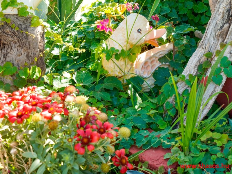 A flekkenező kertsarokban egy gáztűzhelyes főzőrész, ahol serpenyős ételek elkészítése is lehetséges.