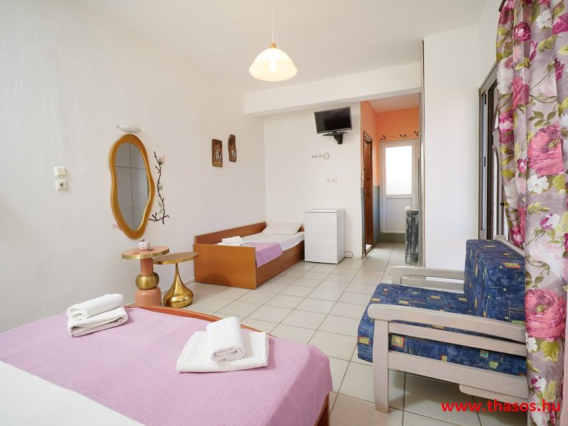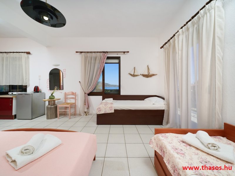 1 db 2+3 ágyas stúdió nagy erkélyekkel, tengeri kilátással /Evterpe/