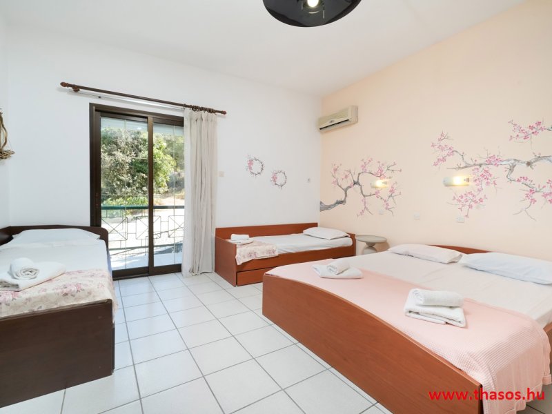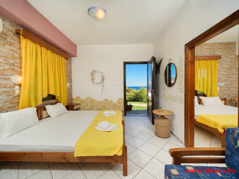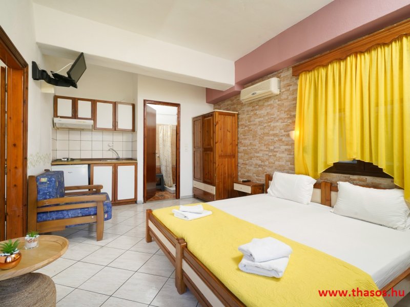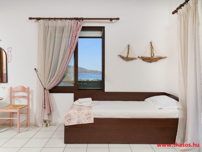 1 db 2+2+1 ágyas apartmanlakás erkélyekkel és csodálatos tengeri kilátással. A hálószobában nagyméretű franciaágy, a nappaliban kisebb méretű franciaágy, és egy kanapéágy. /THALIA /