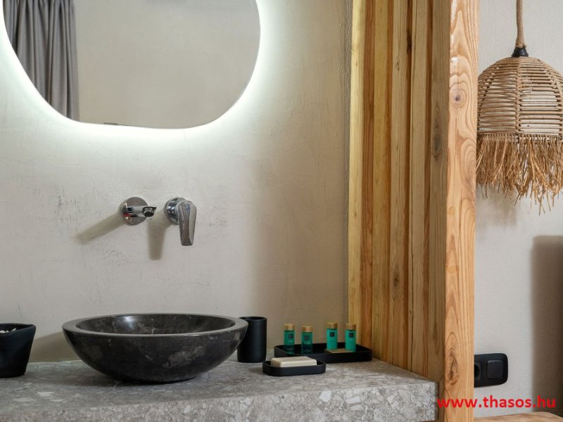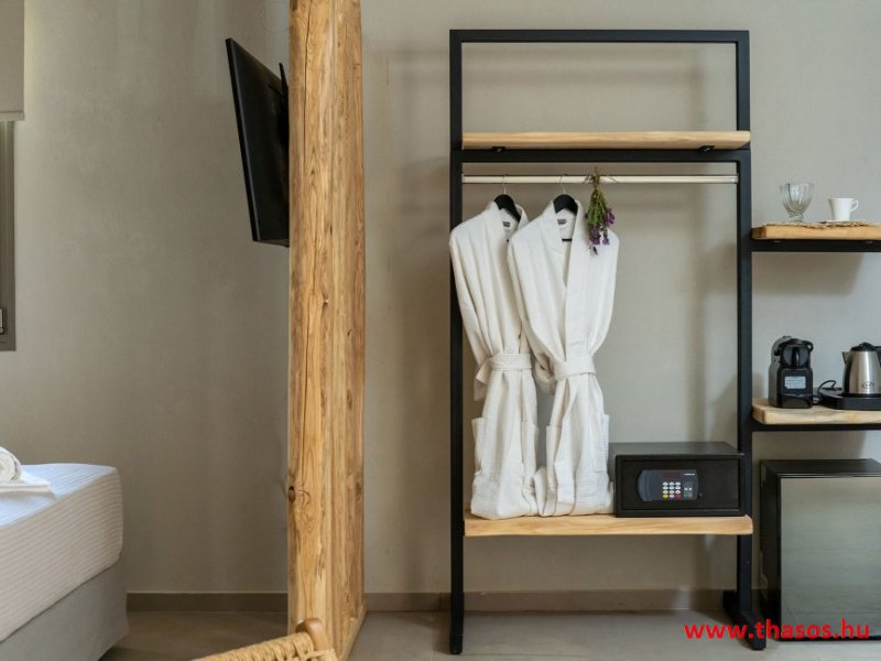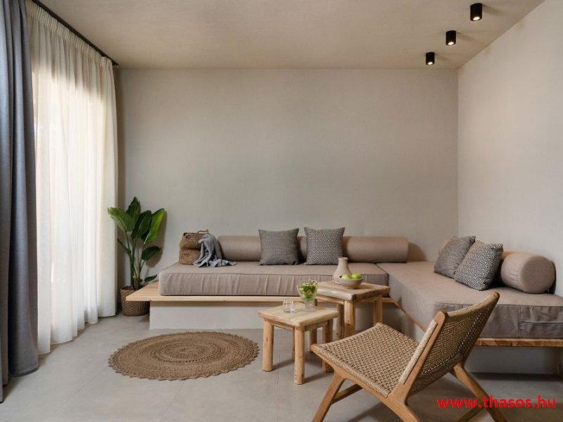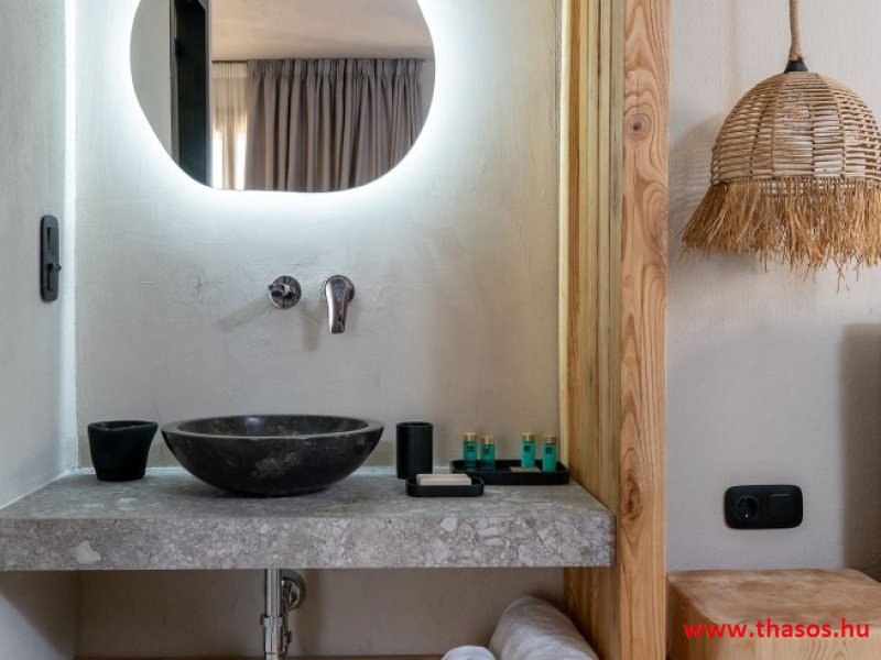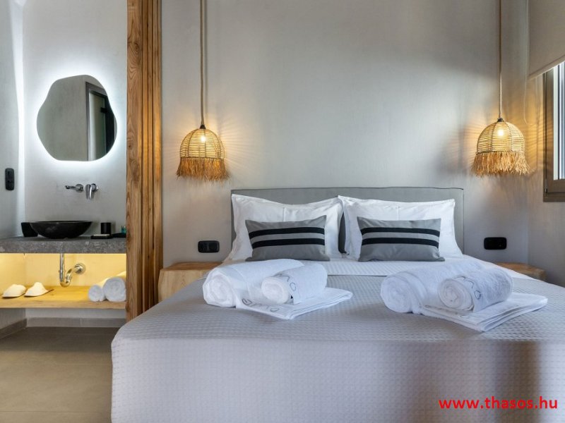 Egyedülálló, kétszintes lakosztályok a harmadik épület legfelső emeletén, 44 négyzetméter alapterülettel, mesés kilátással a tengerre. A táj természetes szépsége tökéletesen tükröződik a földszínekben és a boho dekorációban. Minden lakosztályban van egy franciaágy az emeleten, a földszinten pedig egy nappali, amely akár 4 fő befogadására alkalmas, két egyszemélyes ággyá alakítható, valamint egy privát erkély, ahol leülhet, pihenhet, és kényeztetheti magát a káprázatos napfény, a tiszta kék fényében tenger, a természet hangjai és a békés táj.