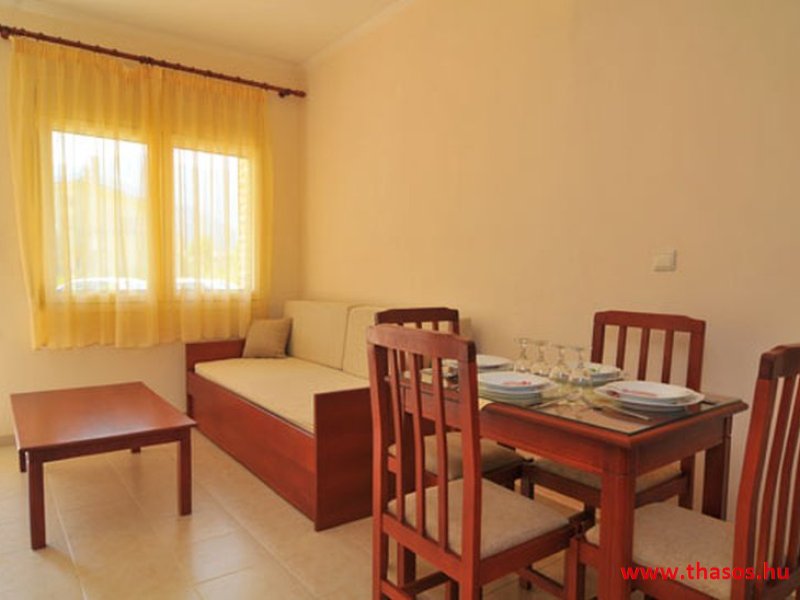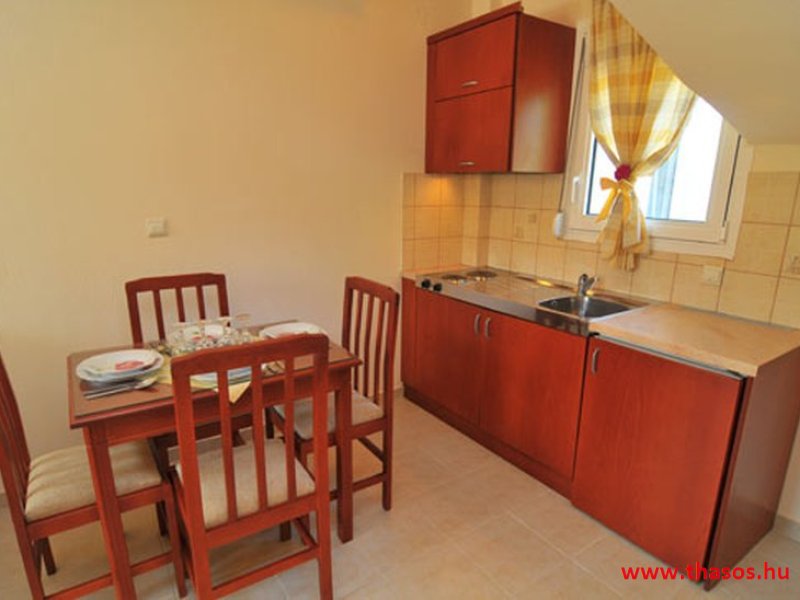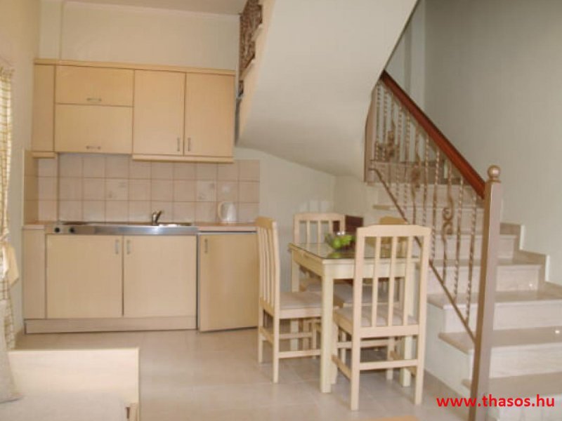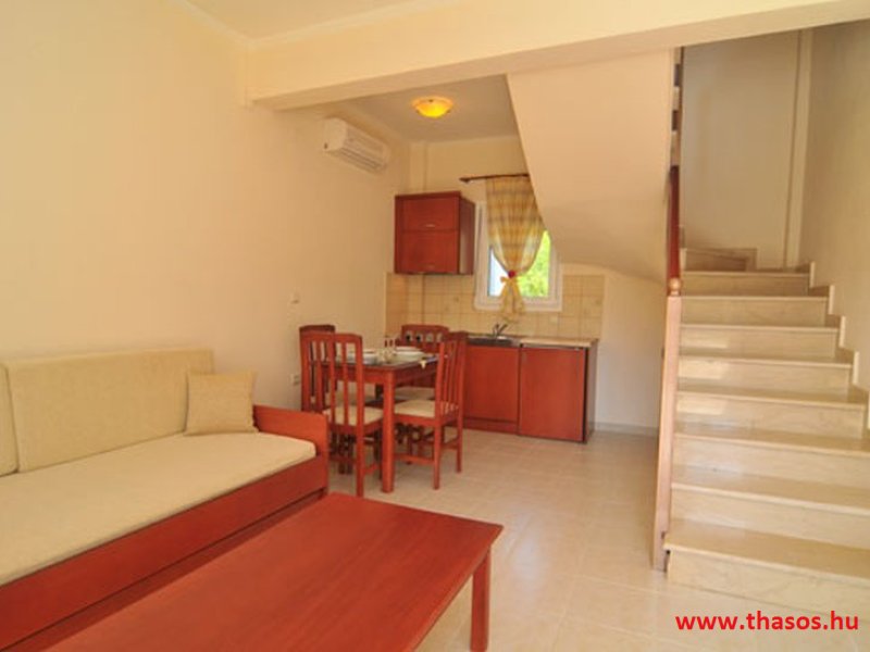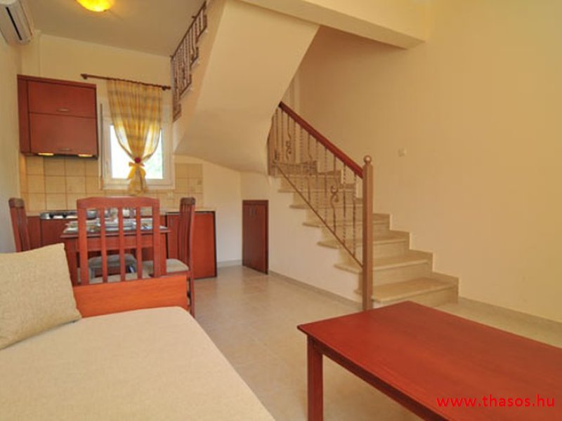 Apartman szobái mazonetta, tehát belső lépcsős emeleti megoldás rendszerűek. Kettő darab lakás ebből lehet pót ágyas megoldűással 5 fős is. A lakások mindegyike kettő darab légkondicionáló berendezéssel van felszerelve. A mazonett rendszer alsó szintjén konyha étkező és kettő személyes kanaopé ágy felnőtt méretre. együtt és külön is használható. Az étkező rész oldalánál van a belső lépcső feljárat az emeletre, hogy a fördőszioba és a hálószoba van. a hálószoba is rendelkezik saját terasszal és légkonduicionáló berendezéssel. kompomisszummal akár kettő igen baráti pár is használhatja ezen mazonett es belső szintes lakásokat.