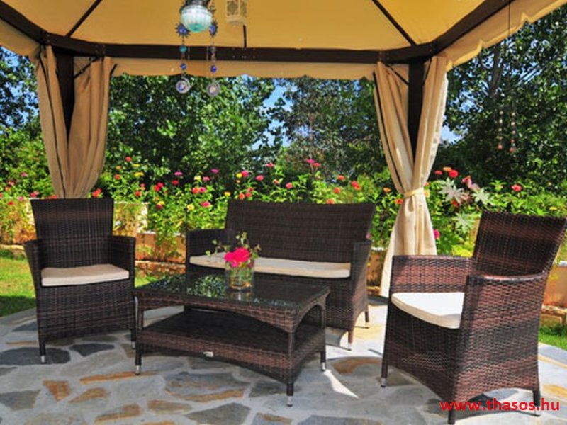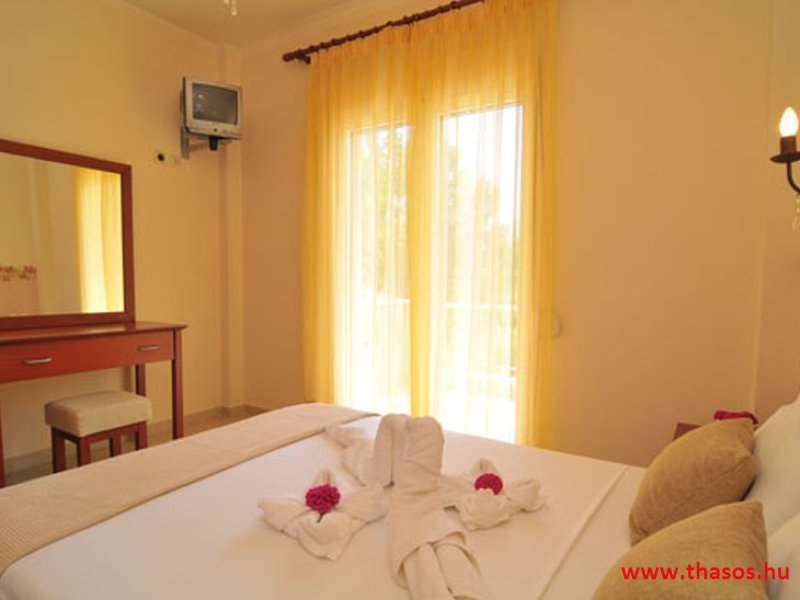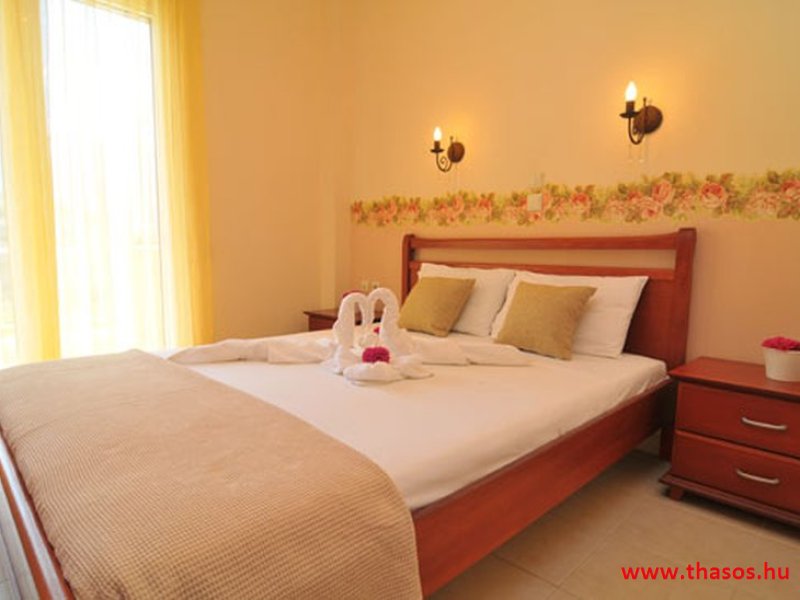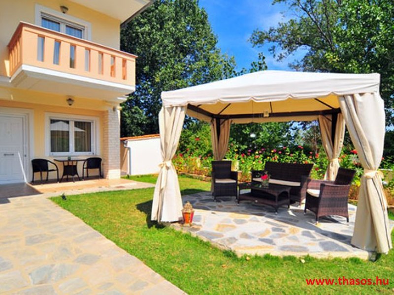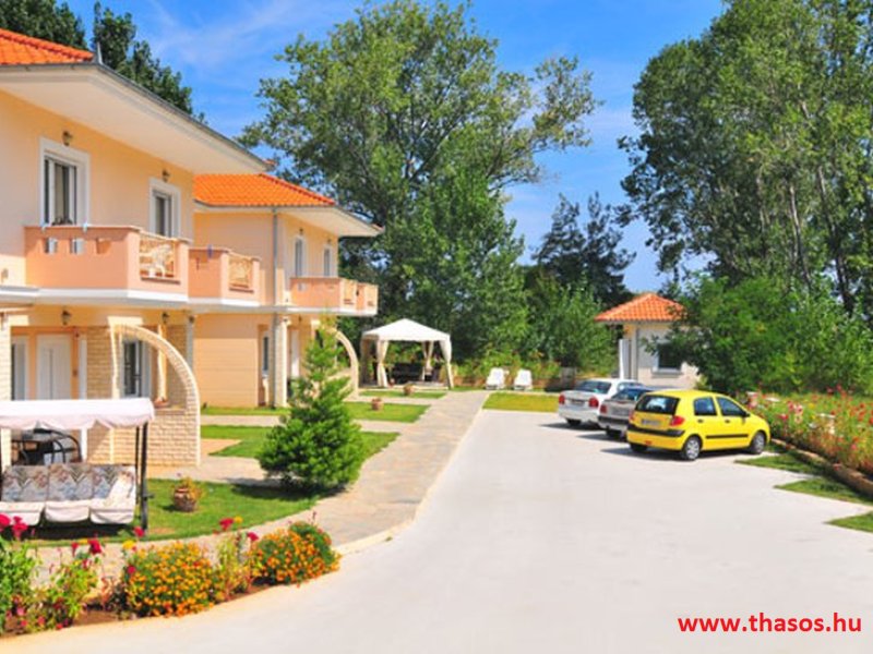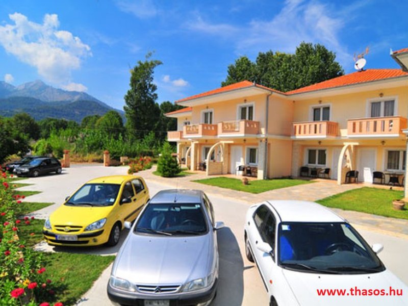 Fekvése az öböl Skála Panagia és skála potámia part közvetlen partrészén. Ez a part igen egyedülálló. A Golden beach középső parti fövenyén kb. 500 méter hosszan nyúlik el a Natura 2000 park. Mit jelent ez? Az Európai Unió által létrehozott Natura 2000 területek, egy olyan összefüggő európai ökológiai hálózat, amely a közösségi jelentőségű természetes élőhelytípusok, vadon élő állat- és növényfajok védelmén keresztül biztosítja a biológiai sokféleség megóvását és hozzájárul kedvező természetvédelmi helyzetük fenntartásához, illetve helyreállításához. Olyan zöld infrastruktúra, mely biztosítja Európa természetes élőhelyeinek ökoszisztéma szolgáltatásait, valamint jó állapotban való megőrzöttségét. E szállás alatt kezdődik e védett terület. A háztól a strandra egy kitaposott földes ösvényen lehet lejutni.