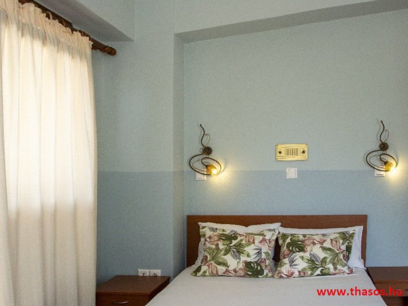 2026. évre új élet költözött ebbe a szálláskomplexumba. A gyönyörű szállás Skála Panagia camping part területe felett van. A szállás csupán néhány lépésre áll az Égei-tenger türkizkék vizétől és a híres Chrysi Ammoudia, azaz Aranypart strandtól. A közelben kristálytiszta vizű strandok, helyi taverna éttermek hagyományos ízekkel és festői ösvények találhatók, ahol sétálhat a tengerparton. A komplexum közepén egy lenyűgöző közös medence, amely ideális hűsítő csobbanásokhoz és pihenéshez a görög nap alatt. A medence speciális biztonsági intézkedésekkel van ellátva a gyermekek számára, hogy biztonságos és gondtalan élményt nyújtson a családok számára. Kényelmes napozóágyakkal és árnyékos területekkel van kialakítva, ideális környezetet teremtve a medencézés élvezetéhez. A lakások része a teljesen felszerelt konyha gyors ételek elkészítéséhez, valamint a hűtőszekrény. A lakások erkélyei tágasak, berendezettek, mint egy kis privát oázis. Ez a ház családi nyaralásra vagy párok részére ajánlott, kik természeti kalandokra vágynak. Teljesen felszerelt stúdióink és apartmanjaink ötvözik a modern kényelmet és az autentikus görög hangulatot. Csodálatos kilátást a tengerre és a zöld hegyekre. A ház közelében az ellátottság biztosított. Skála Panagia öböl közép-keleti részén mi található, mely a nyaraló vendégek ellátását szolgálja? Szupermarket, hentes, pizzériák, gyros tavernák, halas tavernák, kis kocsmák, élőzenés éjszakai parti taverna mind a szálláshoz közel. Élet és nyugalom harmonikusan. A szálláshoz tartozó partszakasz az öblünknek a kempingnél lévő lassan mélyülő, márványporos, hosszú bemenetellel, sekély, meleg vízzel rendelkező része. Lehetséges a napágy bérlés is, de lehetőség van saját törölközős csendesebb partszakaszt is választani. Ami miatt még igen kedvelt ez a partrész, az a három típusú vízisport lehetőség. Három vállalkozó bérel itt helyet: vízi sport, vízi járművek és kifejezetten kisgyermekesek részére vízi paradicsom ugráló is választható. A szálloda vendégeinek egyik legszebb élménye a különleges medencénkben való fürdőzés. A ház komplexuma rendelkezik kétágyas egy légterű stúdiókkal, háromágyas egy légterű luxus stúdióval, mazonett belső szintes apartmannal és a normál egy hálószobás apartmannal. Mindegyike kényelmes, magas színvonalú. Hangulatuk nyugodt, barátságos és kellemes. A vendégek maximális kényelme érdekében a lakások úgy lettek kialakítva, hogy a meghatározott számú személyt tudjanak befogadni, és nincs lehetőség pótágyak hozzáadására. Ez biztosítja az elegancia és a funkcionalitás ideális egyensúlyát, megőrizve a tágasság és a kényelem érzését. Egy légterű stúdió lakásai : Egyedülálló szállásélmény a fényűző és világos stúdióban, amely ideális azoknak a pároknak, akik eleganciát, kényelmet és nyugalmat keresnek. Modern kialakításával és kiváló minőségű felszereltségével ez a szálláshely ötvözi a luxust a hangulatos légkörrel, így tökéletes helyet teremtve a pihenésre és a feltöltődésre. A hálószobás apartmanok: Tágas, kényelmesen berendezett nappali - étkező, teljesen felszerelt konyhával rendelkeznek . A különálló hálószoba ideális környezetet biztosít a pihentető alváshoz, míg az elegáns belső kialakítás ötvözi a modern esztétikát a praktikummal. Tartózkodását további szolgáltatások teszik még kellemesebbé, mint például a műholdas TV a szórakozáshoz, a széf a személyes tárgyainak biztonságához és az ingyenes piperecikkek a modern fürdőszobában. A ház teljes korszerűsítése a mai friss színekkel, bútorokkal, anatómiai ágybetétekkel, stb. 2025 szezonzárás után történt, amiről szezonkezdet előtt fotógaléria frissítést teszünk. Addig is a régi képek állnak rendelkezésünkre. Superior stúdió Kétágyas stúdió Apartman Maisonette Executive stúdió Standard háromágyas szoba, földszinten Standard családi apartmanszoba, földszinten Basic háromágyas szoba, 1. emelet Basic családi apartmanszoba, 1. emelet Medence felőli oldal: Kert felőli oldal: A megadott ár tartalmazza az extra, helyben fizetendő turisztikai adót is. A mazonette és az apartman esetén az árak 4 fő/éjszaka/lakásra vonatkoznak. Azok lehetnek 5 fősek is. Térítési díj az extra főre 10 Euró/éjszaka/mazonette vagy apartman lakás. Egyéb lakások nem pótágyazhatók. Összesen 20 lakással rendelkezik a teljes házkomplexum. Közvetlen medencés lakások, mazonettek, apartman és a standard lakások. Egy lakás esetén: Érkezés és a lakás elfoglalása 14:00 órától. Távozás és a lakás átadása: 10:00 - 11:00 óra között. Képek a szállásról Superior stúdió Kétágyas stúdió Apartman