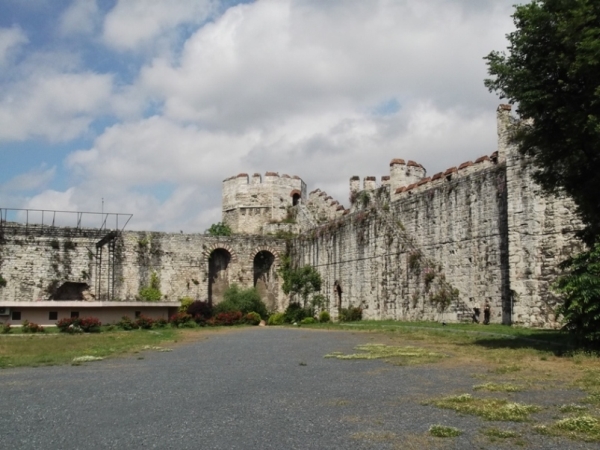 Onnan kijőve megkerültük az Aja Sofiát és a túloldalán mentünk a Topkapi Szeráj felé. Oda nem akartunk bemenni, csak a fizetős kapu előtti részt szerettem volna megnézni. Ma az Üdvözlés kapuja utáni részre kell fizetni. A középkorban itt előtte tartották a kivégzéseket. Valahol ott van a kapu közelében a hóhér kútja, meg a kövek, amikre közszemlére kitették a leválasztott fejeket. Ez a régi Panoráma útikönyvben benne van, de a neten fellelhető ismertetésekben, beszámolókban sehol egy kép, sehol egy szó róla. Ezt szerettük volna látni. A Topkapi külső kapuja előtti részt éppen térkövezték, valahogy átlavíroztunk a madzagok között egy turistacsoport nyomában – és pofára estünk. Két marcona fegyveres őr a csoportokat beengedte, de az egyéni turistákat nem. Hát akkor menjünk a Soğukçeşme utcán, a Topkapi Palota fala meg az Aja Sofia háta között, le a Gülhane park bejáratáig. Ott aztán irány a Régészeti Múzeum. Közbevetem, hogy a múzeum után abból az irányból is megpróbáltunk bemenni a Topkapi első udvarába, de ott se engedtek be, csak sokkal udvariasabban közölték, hogy ma zárva van. Később, ahogy a Gülhane parkban üldögéltünk, jött a parkon keresztül alulról egy kék lámpás küldöttség, gondolom, Fontos Ember miatt nem engedték be aznap a pórnépet. Gondoltuk, megnézzük majd később… de végül nem lett később.
