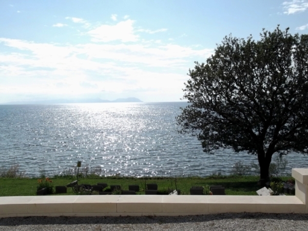 Potamiában a Topcisznál megálltunk, hogy gyorsan vegyünk valami ennivalót, tejet, kenyeret, mézet, olajat, paradicsomot… Fölnéztünk a falura meg a hegyre… hm… felhőben van a hegy teteje… Ági meg fönt van a csoporttal… De aztán már ott is voltunk a Viki parti háznál. Ahogy lefékeztünk, esőcseppek, szélroham, a felhők és a víz hihetetlen színjátéka… amíg fölvittük a cuccot, kitört a vihar. Láttam már vihart itt az öbölben… az is emlékezetes látvány volt… de most egész más színeket mutatott a természet. Cipelés helyett rohangáltam a fényképezőgéppel… Aztán elállt az eső, és a víz fölött a sötét ég előtt felragyogott egy szivárvány.