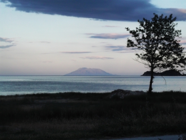Ahogy hazahoztak minket, a parton feltűnt, hogy rendkívül tisztán látszik a lenyugvó nap fényében Szamothraki, majdhogynem meg lehetett számolni a sziklahasadékokat. Ilyen ritkán fordul elő, ez rendkívüli időjárási helyzet. Az is volt.