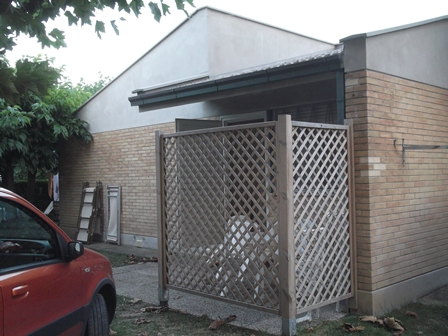 Még ide szúrom be: már Ferrarától is, aztán a kirándulások során többször is az SS 16 jelű országúton jártunk. Feltűnt, hogy bizonyos időközönként útőrházak kockái tűnnek fel az út mentén, rajtuk a felirat, néhol kiírva, néhol csak rövidítve: Strada Statale N.16 Adriatica, xxx km…