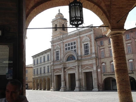 Anconától délre Loreto nagy templomtömbje uralja a környezetet. Oda nem mentünk, mert tavaly a csoporttal jártam ott. Most nem vallási jelentőségű helyeket akartunk felkeresni, de hát Itáliáról lévén szó, ez nehezen valósítható meg, azért olyan is akadt. Loreto látványa mindenesetre útjelzőnek kiváló ![]()