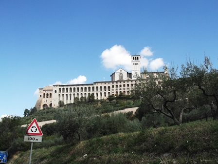 Először elindultunk északra Civitanova Marche-ig, majd onnan nyugatnak Foligno felé. Assisi felé bementünk a város irányába. Nem mentünk be a városba, több idő is végigjárni, mint amennyi egy megállóba belefér, meg az autót se akartuk őrizetlenül hagyni, de elmentünk a városfalak alatt, majd egy ponton, ahol kopasz a domboldal a Szent Ferenc bazilika alatt, ott lassítottunk, hogy egy-két fényképet sikerüljön lőni.