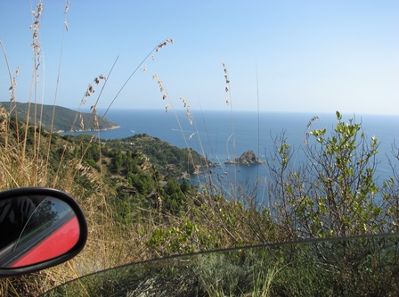 Civitavecchián át ugyan kissé sűrű volt az autós élet, ott volt dugó, meg a következő városkában is torlódott a sor, de láttuk autóból a kikötőt, a Szardiniára menő hatalmas hajót, a tengerparti sávot terekkel-parkokkal. Utána még jó darabig a parton vezetett az út – el tudtunk búcsúzni a tengertől.