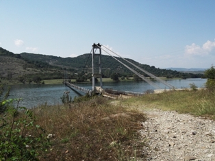 Maradt a kísérlet a földúttal. Siroko Polje faluban rosszabb volt az út, a falu után a földút simább. Egy darabig. Aztán egy ponton meg kellett állni, kisautónk ott már nem bírta a dzsipnek való körülményeket. Onnan még kb. egy km volt gyalog a híd. Gyalogos és biciklis híd vezet át a túloldalra, Lizicite faluba, itt meg van egy feltételes vasúti megállóhely.