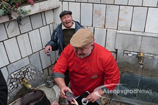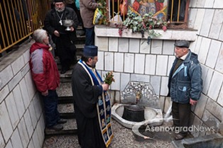 Az utunk Kardzsali felé Aszenovgrádnál ágazott el, tehát vissza kellett menni a városba. Megkerestük az Angyali Üdvözlet templomát, annak is az utca felőli kútját. Információkeresés közben, mikor aszenovgrádi képeket nézegettem, feltűnt egy kép, egy kutat ábrázolt, ahol halfejekből folyik a víz. Kell hogy legyen valami jelentősége, ha lefényképezték… Addig kutattam, amíg találtam egy újságcikket, ami szerint pár éve csőtörés volt ott, és arra gondoltak a helyiek, hogy helyreállítják a kutat és felelevenítik a régi hagyományt, ami szerint Szőlőmetsző Szent Trifon napján bor folyik a kútból Azt nem tudtam a bolgár szövegből a google-fordítóval kisillabizálni, hogy csak a felavatáskor vagy minden évben Szent Trifon napján megtörténik-e a szertartás… de találtam képeket, amin a pap éppen megáldja a cuccot, aztán kis poharakban osztják a bort az ott álló híveknek
