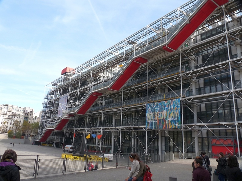 A Pompidou Központ a modern művészetek háza. Elsőre bontásra ítélt gyárépületnek vagy befejezetlen építkezésnek tűnik. Kicsit olyan, mintha kifordították volna. A közmű vezetékek ugyanis kívül helyezkednek el az épületen, funkciójuk szerint eltérő színekben. Előtte hatalmas szökőkút, benne kissé gyermeki lélekre valló nagyon színes, modern műalkotásokkal, amelyek mindegyike forog, spriccel a szökőkút közepén. Nincsenek rá szavak. Számomra vicces.