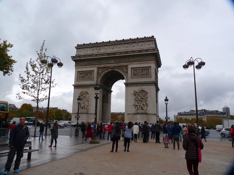 Másnap ismét a L'Hotel de Ville-nél kezdtünk, majd a szitáló esőben végigsétáltunk a Rue de Rivolin a Louvre mellett, az árkádok alatt. Mire kiértünk a Concorde térre, elállt az eső. Megkerülve a teret a Champes Élysées-n sétáltunk el a Diadalívig, azaz a Arc de Triomphe-ig. Kb. másfél órás séta volt. :)