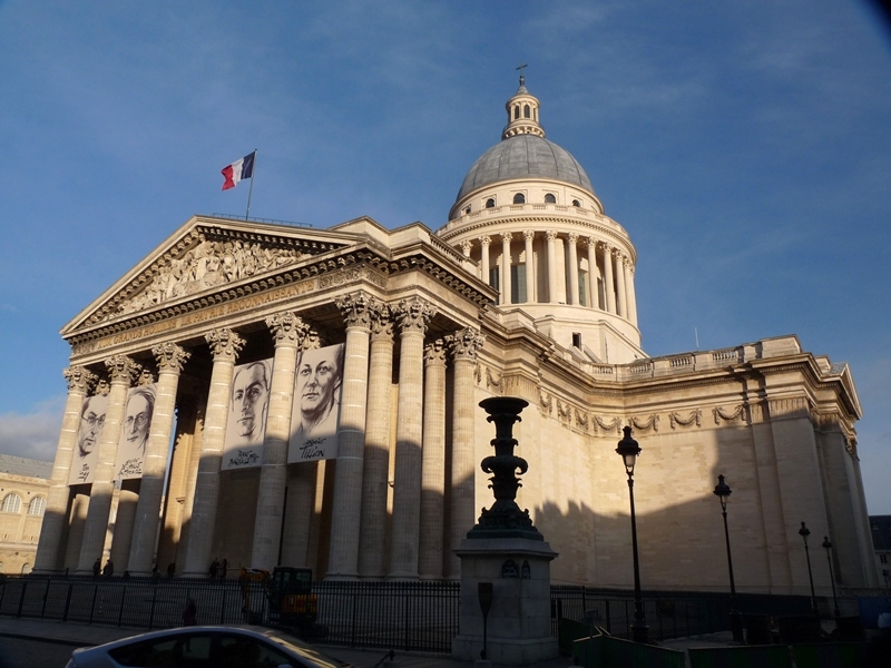 A Pantheon eredetileg templomnak épült, az alapokat 1758-ban fektették le. Az épület 110 m hosszú, 84 m széles és 83 m magas. Az építkezés nem volt zökkenőmentes, e miatt végül nem templomként funkcionált, hanem a Forradalmi Kormányzat nagyjainak mauzóleuma lett. A későbbi évek során visszakapta templomi szerepét és Franciaország olyan jelentős személyeit temették ide, mint Voltaire, Rousseau, Mirabeau, Marat, Victor Hugo, Emile Zola.